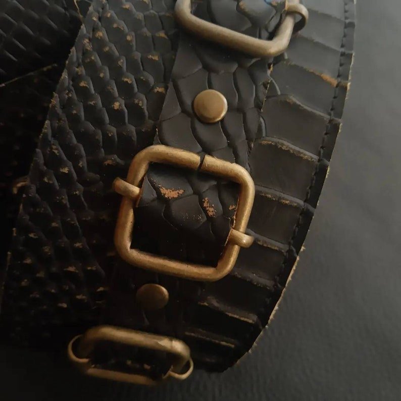 Confeccionada con cuero vacuno de textura anaconda, desgastado lo que le da mucho carácter. Y detalle en de hebillas en todo el largo. Esta correa no solo proporciona comodidad y soporte durante tus actuaciones, sino que también resalta la estética única de tu instrumento. Esta correa será el complemento perfecto para lucir en el escenario. ¡Destaca con estilo mientras llevas tu música al siguiente nivel!
