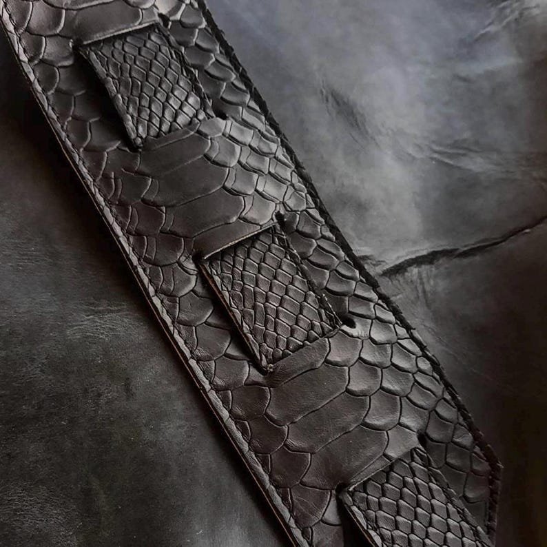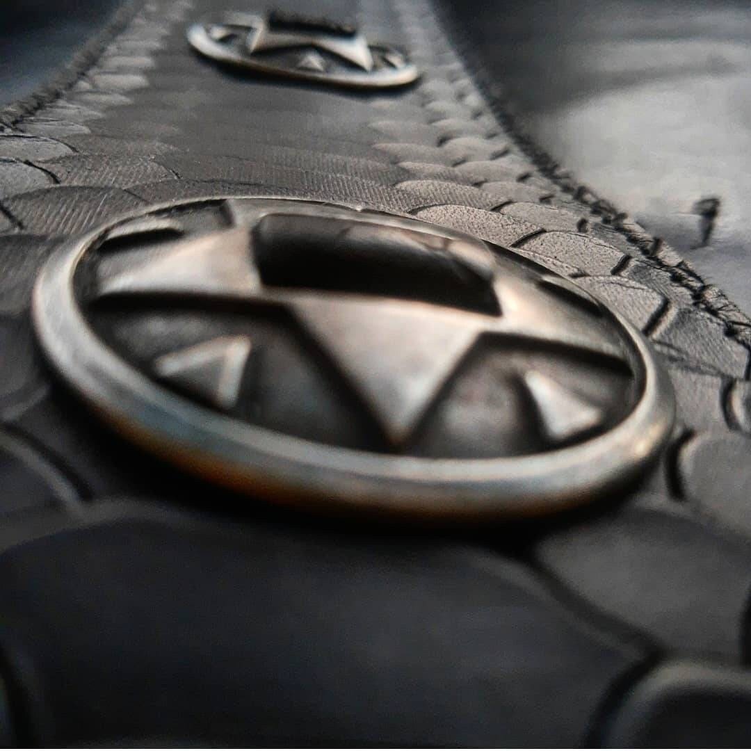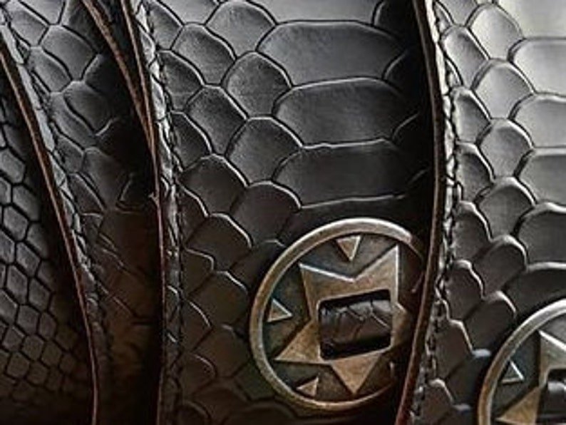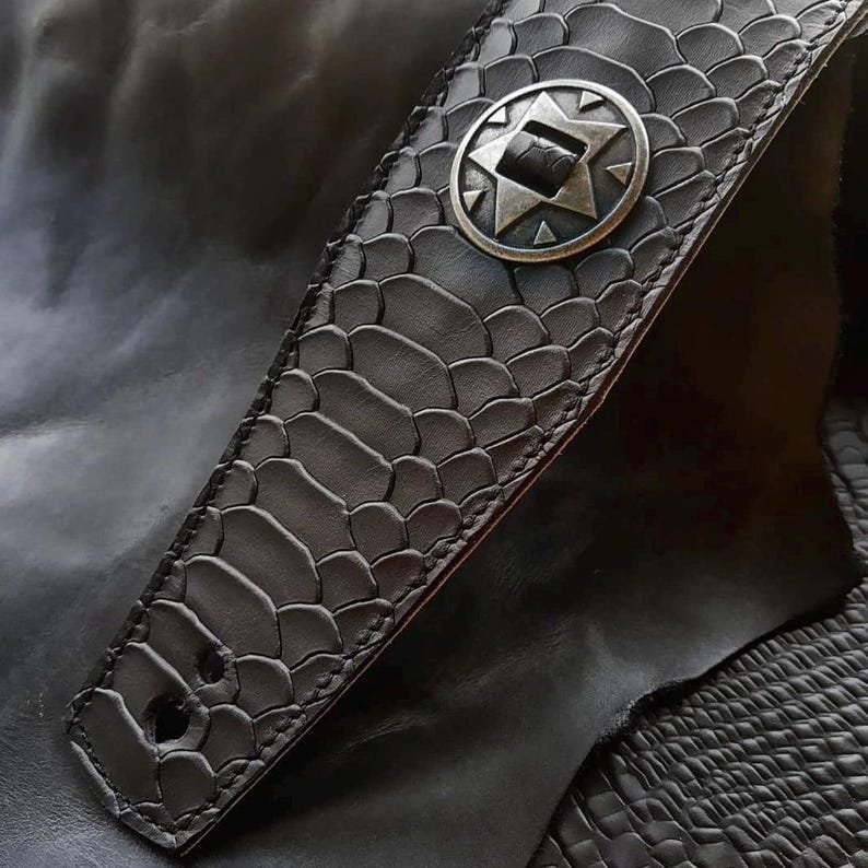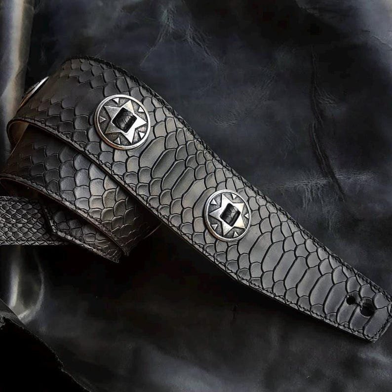 Esta excepcional correa destaca por la textura de su cuero y los conchos metálicos de estrella. Calidad superior y una flexibilidad inigualable, convirtiéndola en el compañero perfecto para aquellos músicos que valoran la comodidad sin comprometer el estilo.