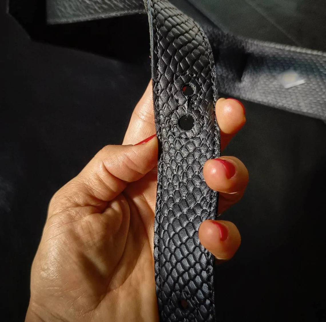 Una correa con textura excepcional snake. Cuero flexible en un diseño sencillo pero audaz! Subi al escenario y lucite!
