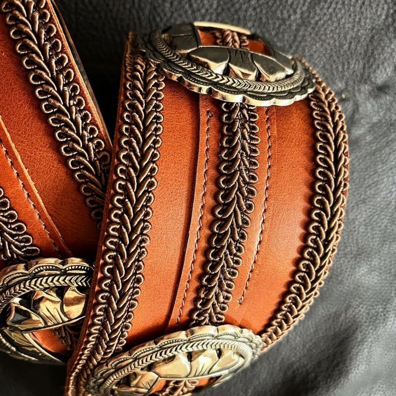 La correa está confeccionada completamente a mano. Se tiza, se corta y ensamblan todas las piezas, una por una.