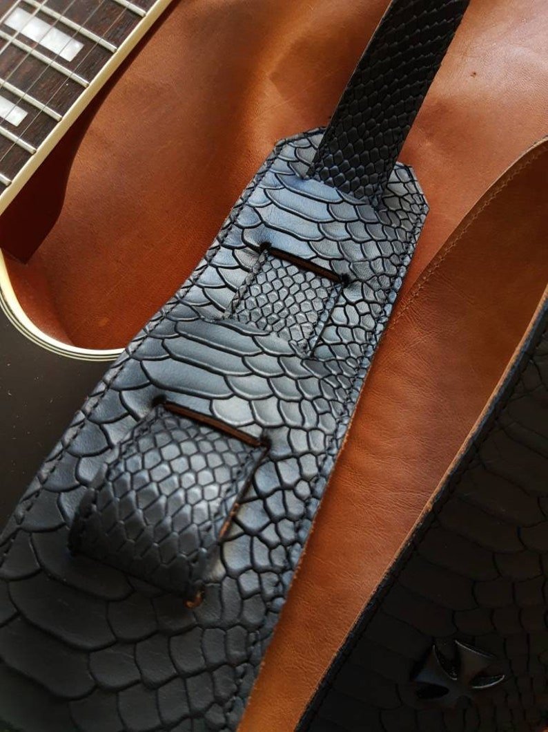 → Los orificios de cada extremo y ranuras desde donde regulas el largo de la correa, están cosidos por todos sus bordes para soportar perfectamente el peso de tu instrumento a través de los años!
