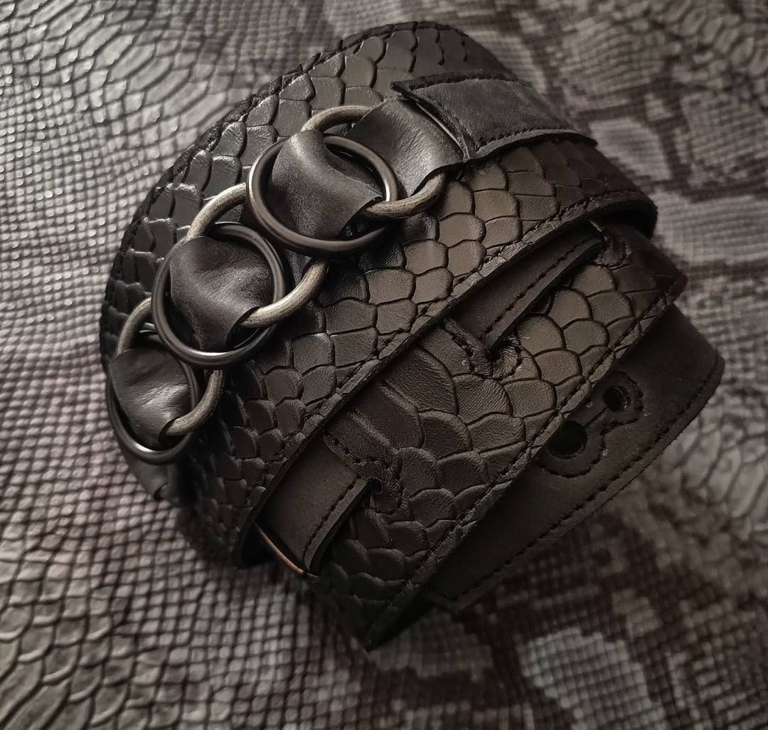 Increíble correa para guitarra de cuero legítimo con argollas y textura de reptil! Este diseño 100% original es único en su clase, confeccionado con cueros exclusivos que no encontrarás en ningún otro lugar. Además de su aspecto distintivo, esta correa ofrece durabilidad y comodidad para acompañarte en cada actuación. ¡Haz que tu presencia en el escenario sea explosiva con esta correa que destila originalidad y estilo!