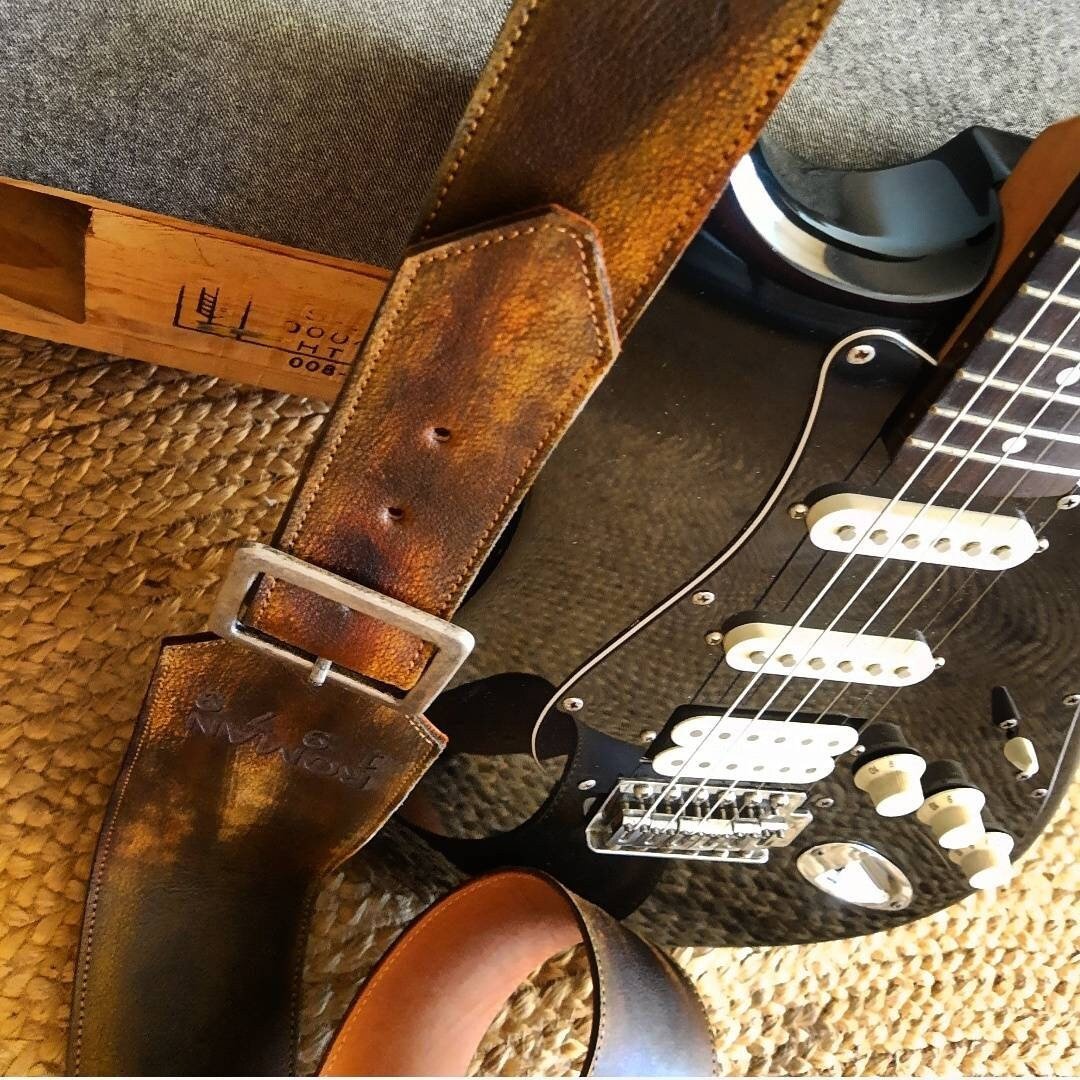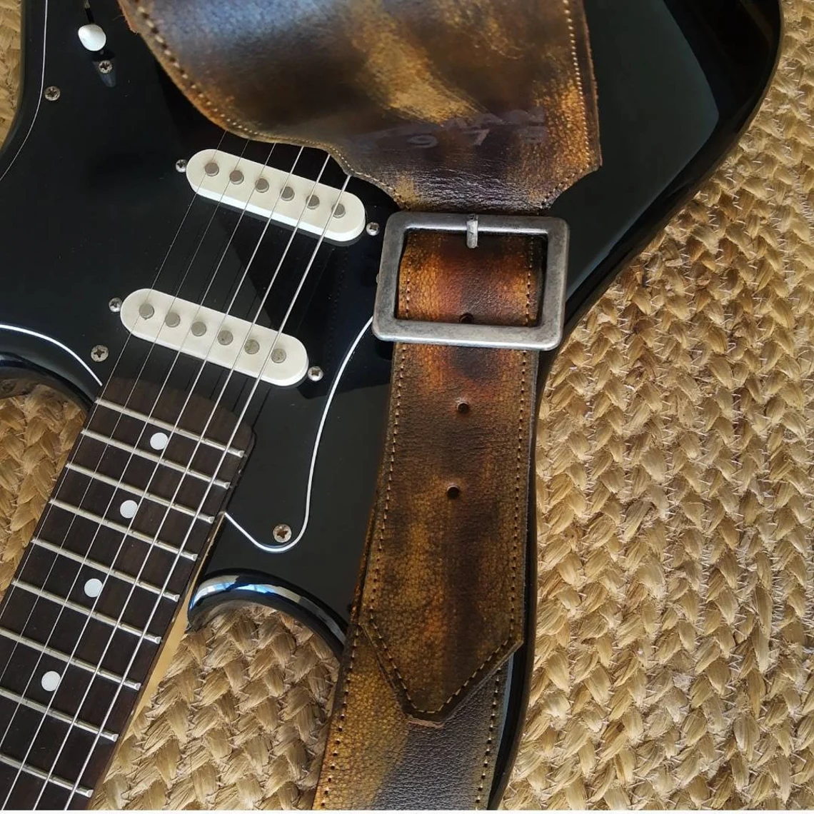 → Los orificios de cada extremo y ranuras desde donde regulas el largo de la correa, están cosidos por todos sus bordes para soportar perfectamente el peso de tu instrumento a través de los años!